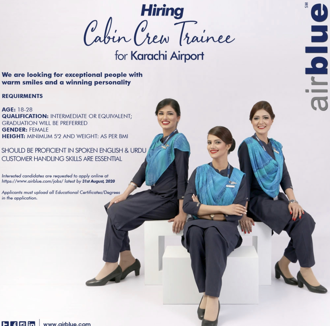 • Interested candidates are requested to apply online at www.airblue.com/jobs latest by 31stAugust 2020.